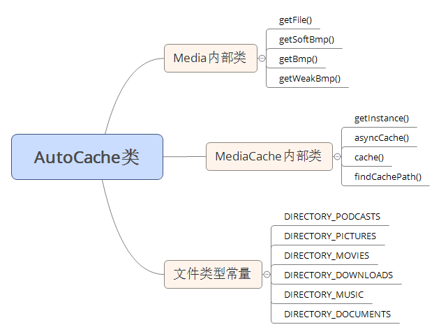 为方便开发者,AutoCache提供统一调用入口,调用方式十分简洁。下面先给大家看一张思维导图,该图罗列了框架的主体功能及其构成。