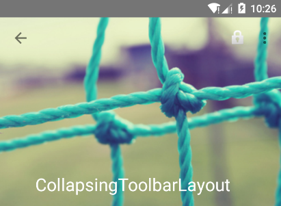 1 2 3 4 5 6 7 8 9 10 11 12 13 14 <android.support.design.widget.AppBarLayout android:id="@+id/appbar" android:layout_width="match_parent" android:layout_height="@dimen/detail_backdrop_height" android:theme="@style/ThemeOverlay.AppCompat.Dark.ActionBar" android:fitsSystemWindows="true"> <android.support.v7.widget.Toolbar android:id="@+id/toolbar" android:layout_width="match_parent" android:layout_height="?attr/actionBarSize" app:popupTheme="@style/ThemeOverlay.AppCompat.Light" /> </android.support.design.widget.AppBarLayout>
