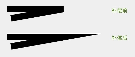 而这种补偿方案会有一个问题:如果拐角的角度太小,就有可能由于出现连接点过长的情况。比如这样: