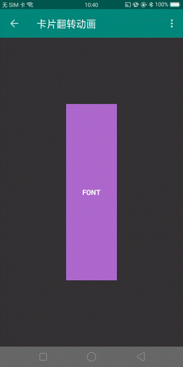 2 翻牌动画 该动画适用于在两个 View 之间实现类似翻牌的动效。本节的翻牌动画借助了FragmentTransaction类的setCustomAnimations方法,该类从 Android3.0(API等级11) 开始可以调用。当然,你也可以借助其他的方式实现咯。