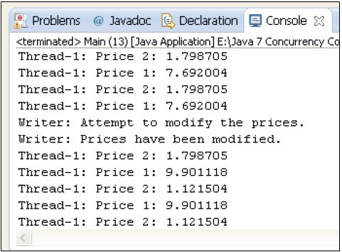 在下面的例子中,你将会学习如何使用ReadWriteLock接口实现一个程序,使用它来控制访问一个存储两个产品价格的对象。